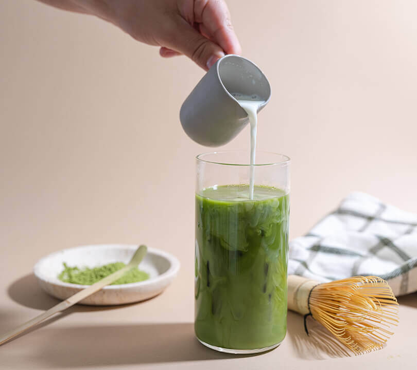 Pour the frothed milk over the whisked matcha. Sweeten if desired. Sip slowly and enjoy your calm energy boost.